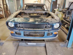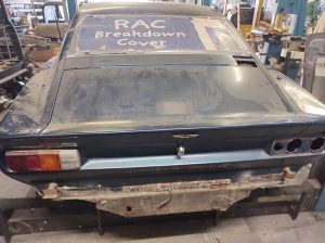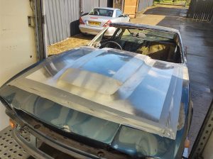 This Aston is available in the UK. It had a small under bonnet fire. A new bonnet was made, but will need sills, trailing arm pick up and various corrosion repairs. All the steel parts are available, stripped and ready to start. The last of the V8's don't come up very often as projects!