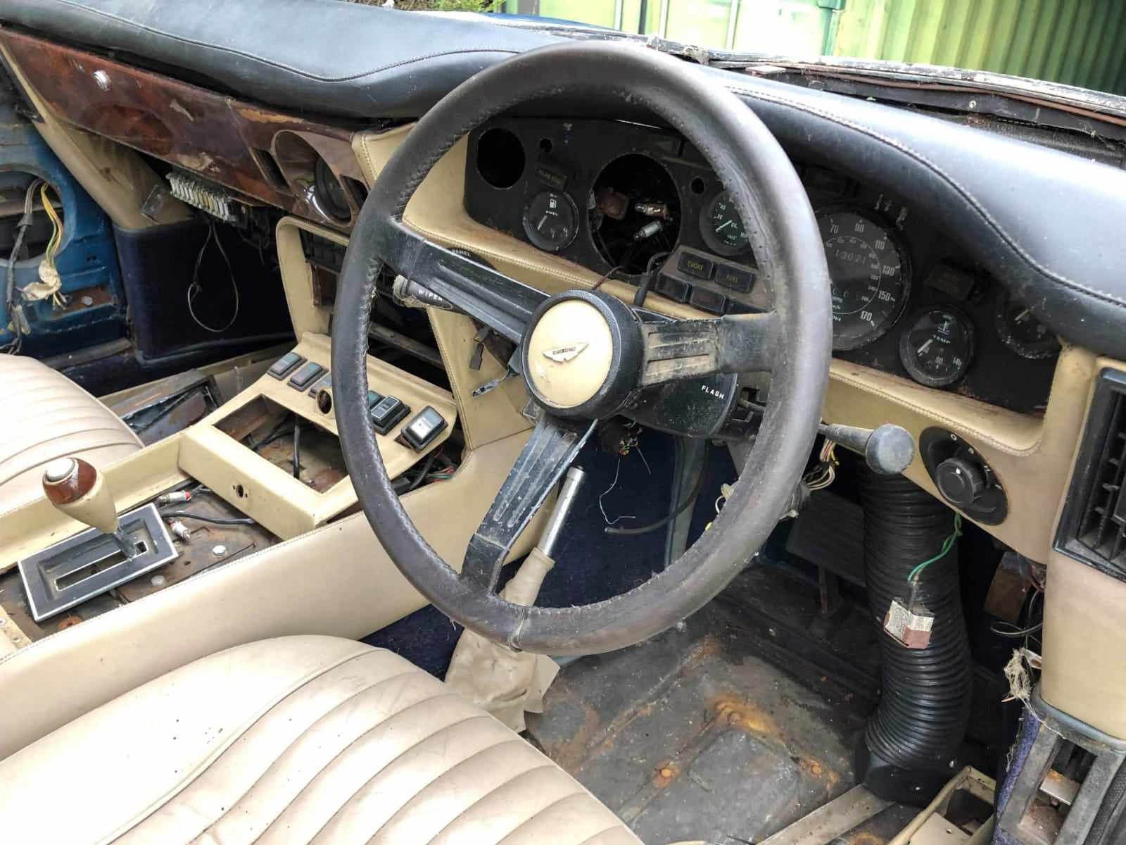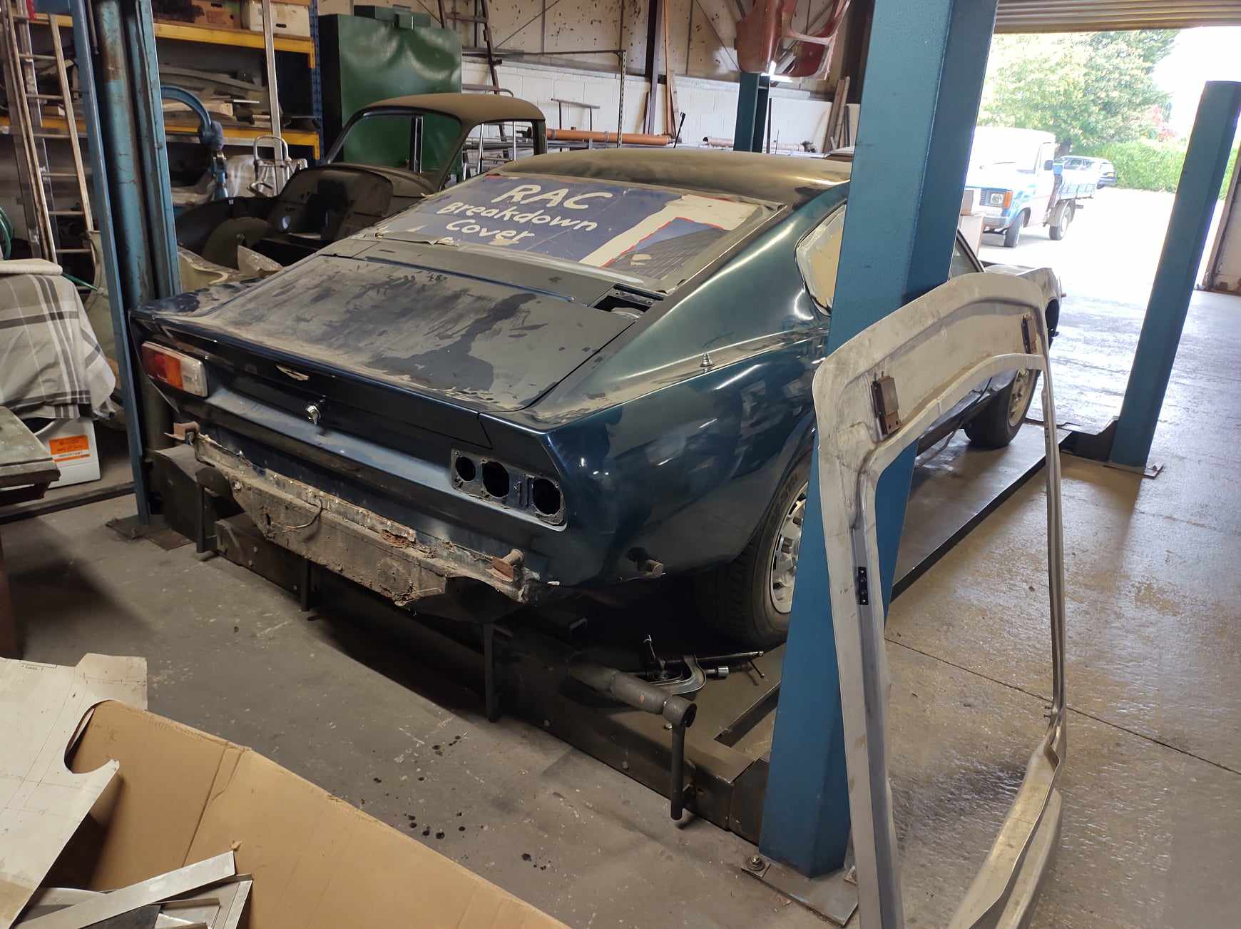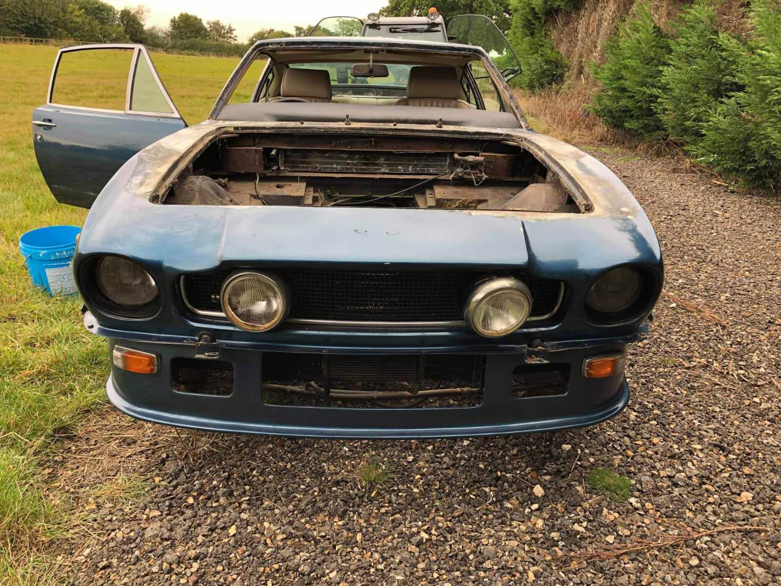 This Aston is available in the UK. It had a small under bonnet fire. A new bonnet was made, but will need sills, trailing arm pick up and various corrosion repairs. All the steel parts are available, stripped and ready to start. The last of the V8's don't come up very often as projects!