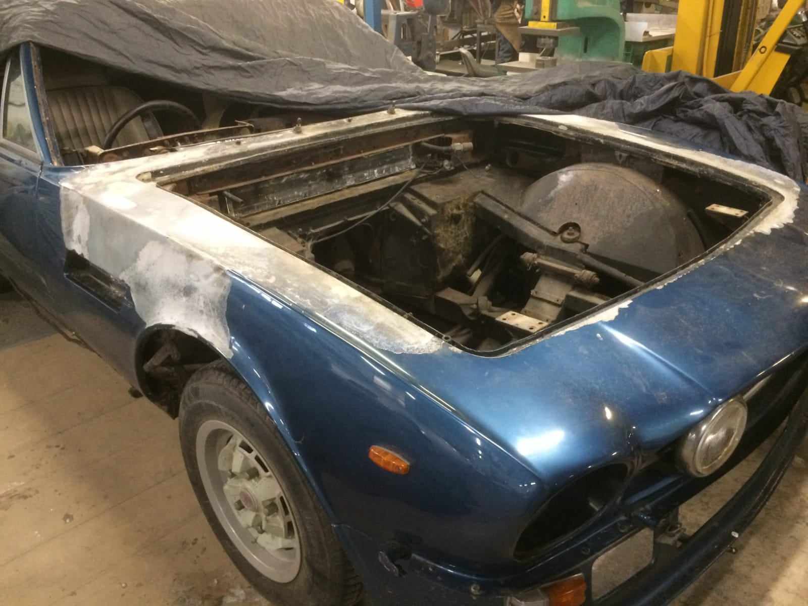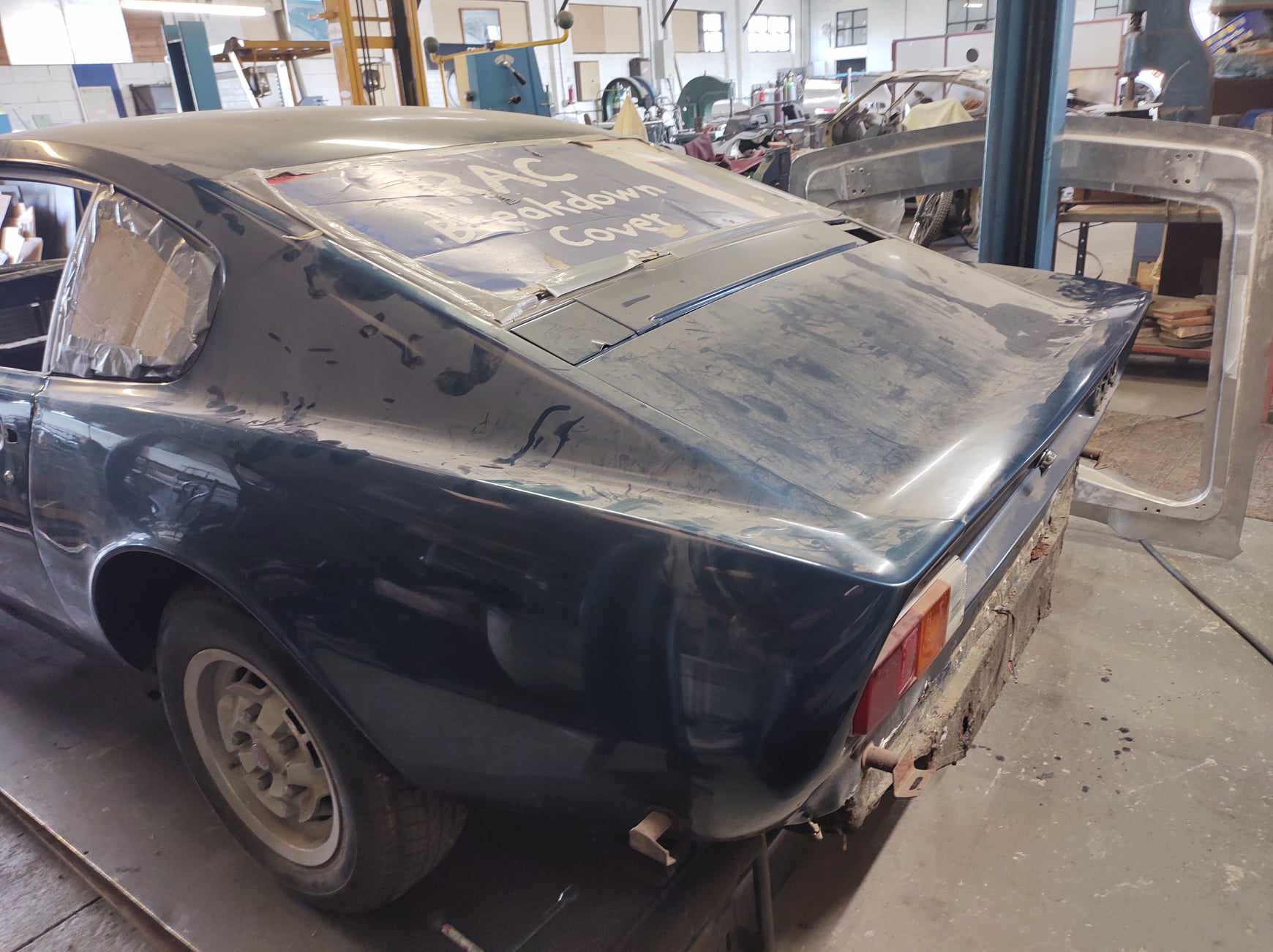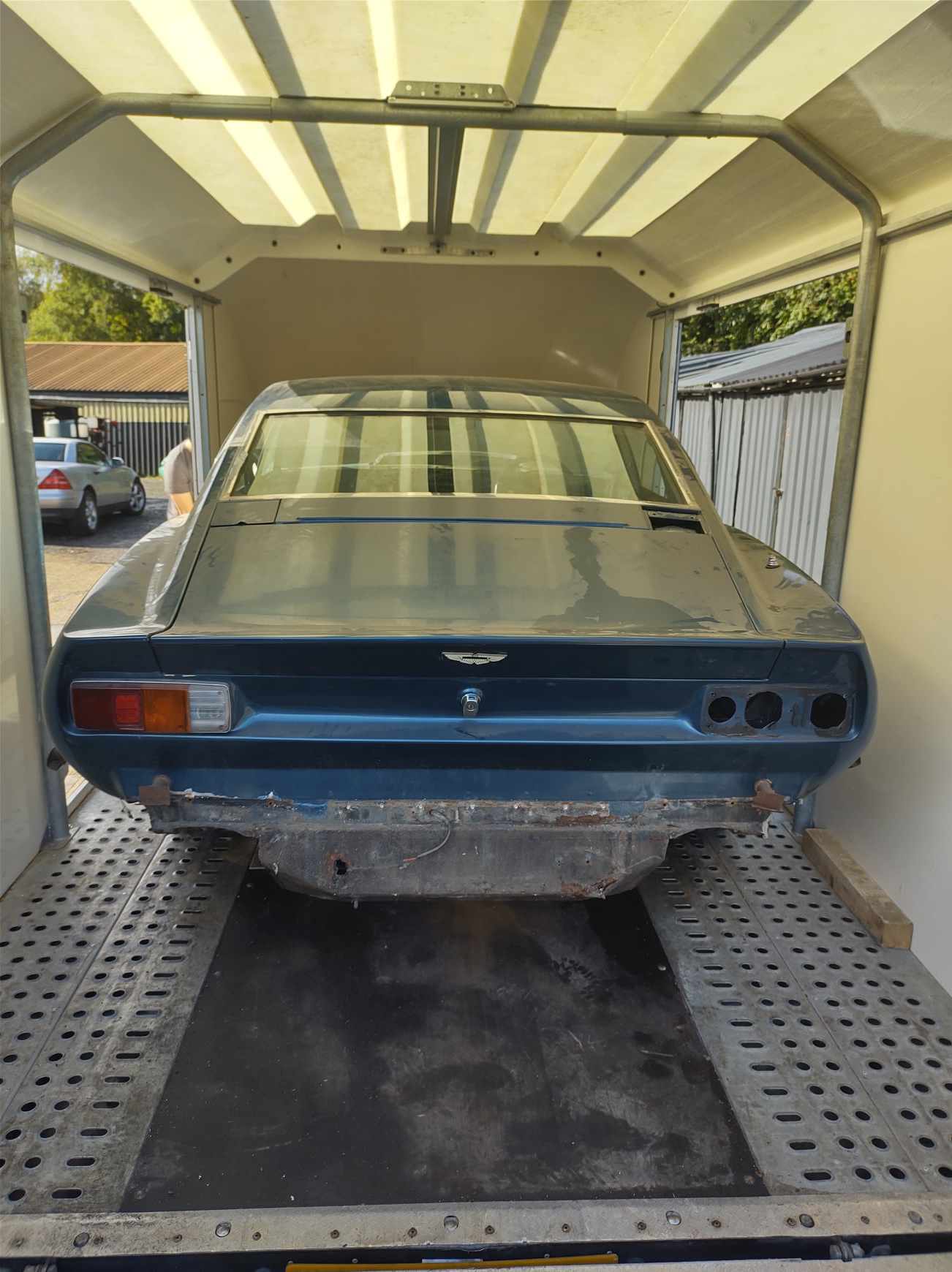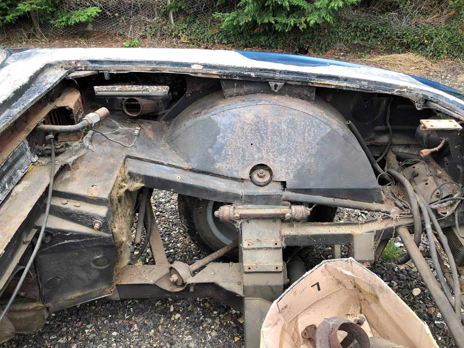 This Aston is available in the UK. It had a small under bonnet fire. A new bonnet was made, but will need sills, trailing arm pick up and various corrosion repairs. All the steel parts are available, stripped and ready to start. The last of the V8's don't come up very often as projects!